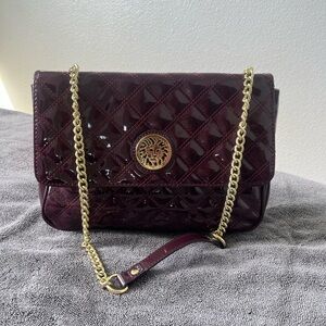 Anne Klein Maroon/Purple and Gold Quilted Shoulder Bag