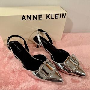 Anne Klein Metallic Silver Bernette Bow Pump heels /size 8.5