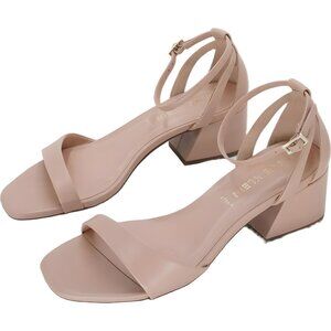 Anne Klein Mia Ankle Strap Block Heel Sandals Nude Smooth US 10M