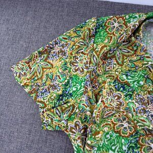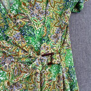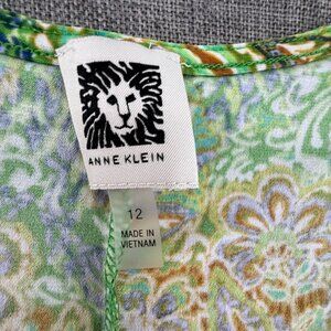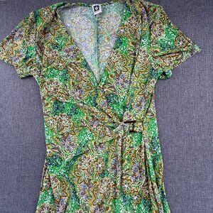 Anne Klein Midi Dress Size 12 Low V-Neck Short Sleeve Stretchy Green Faux Wrap