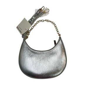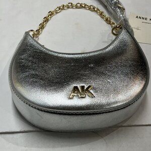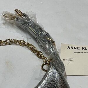 Anne Klein Mini Bag Purse Silver Metallic Crescent Gold Chain Strap 90s Y2K
