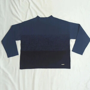 Anne Klein Mock-Neck Colorblock Viscose Blend Boxy Sweater, Color Blue/Blck Sz L
