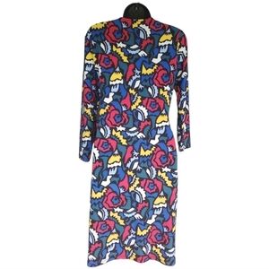 Anne Klein Multi Color Abstract Long Sleeve Faux Wrap Dress Size S