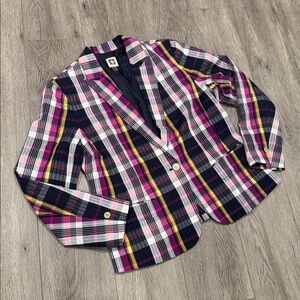 Anne Klein Multicolor Cotton Plaid Blazer Size Large F8