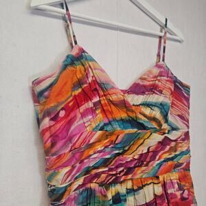 Anne Klein Multicolor Cotton Silk Blend Party Dress in excellent condition. A-line and fully lined.