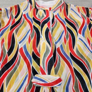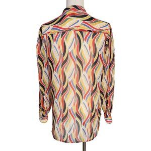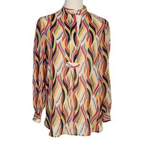 Anne Klein Multicolor Geometric Sheer Longsleeve Blouse Women's Size 2