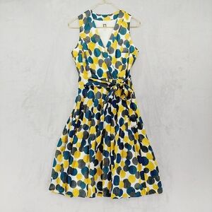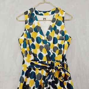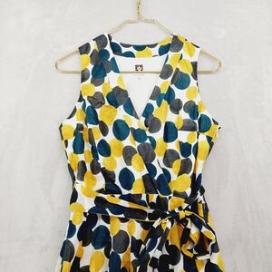 Anne Klein Multicolored Polka Dot Midi Tie Sleeveless Cotton Dress