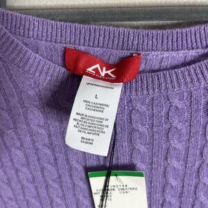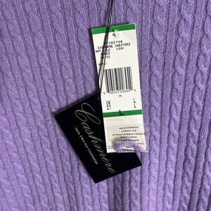 Anne Klein NEW Size Large Purple Lavender Cable Knit Cashmere Sweater