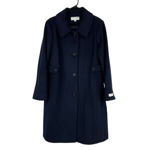 Anne Klein NWT Club-collar Walker Coat Navy Blue Cashmere Wool Blend
