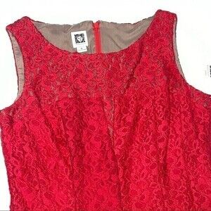 Anne Klein NWT Lipstick Red All Over Lace Lined Sleeveless Dress Size 6 Zip Up
