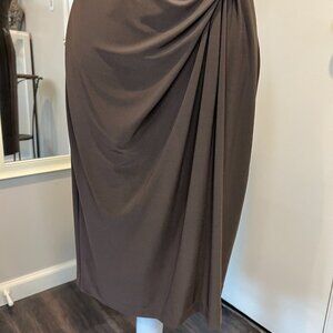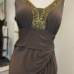 Anne Klein Brown Sleeveless Embellished Ruched Midi Dress, Size 6