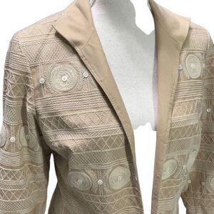 Very very nice open front jacket. All over embroidery with small button pattern all over.