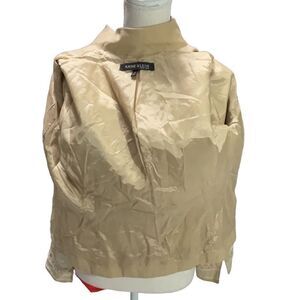 Anne Klein NY Khaki Open Front Jacket Embroidered Lined Long Sleeve Size 4P