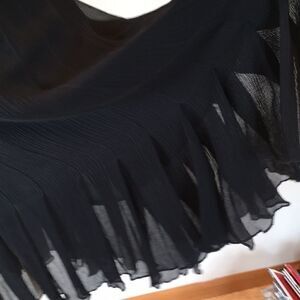 Anne Klein side button sheer lined crepe silk skirt with stitches ending in swinging pleats, yoke with side buttons size 12, black, like brand new.