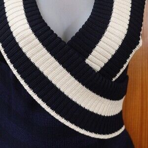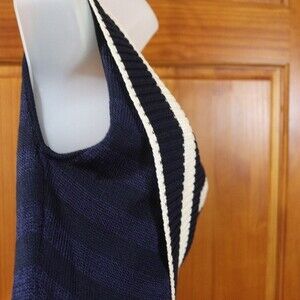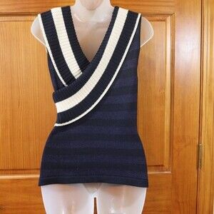 Anne Klein Navy Blue Striped Knit Sleeveless Silk Top Medium