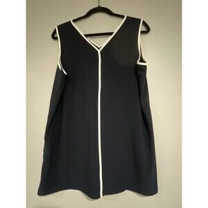 Anne Klein Navy Blue White Striped Sleeveless Silky Top M Medium Shirt Blouse