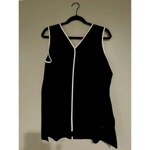 This Anne Klein top is a versatile addition to any wardrobe. The sleeveless tank style with a V-neckline and pullover closure is perfect for a variety of occasions, from travel to business to casual wear. The blue color with white piping adds a pop of contrast, and the synthetic blend material is lightweight and breathable.