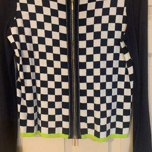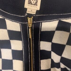 Anne Klein Navy Blue/White Check Cardigan Sweater sz S