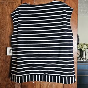 Anne Klein Navy & White Horizontal Stripe Sleeveless Pullover Top Women’s M NWT