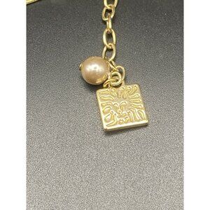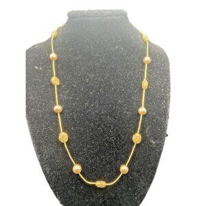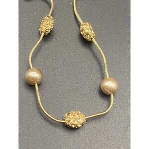 Anne Klein Necklace Matte Gold Pave Rhinestone Bead Station Snake Chain 16+2"
