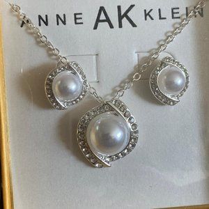 Anne Klein Necklace and Earrings Set with faux Pearl and rhinestones. Fashion Jewelry. New in original box.