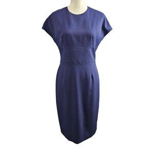 Anne Klein New Short Sleeve Cap Solid Navy A-line Midi Shift Dress Size 6 NWT