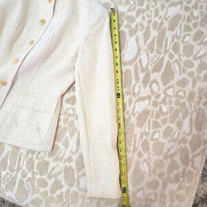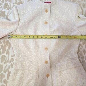 Anne Klein Off White Textured Jacket Mandarin Collar & Pockets Women Size 4