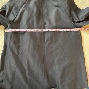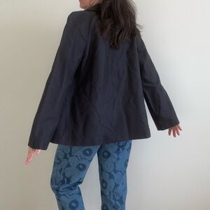 This jacket is so perfect. Open front. Great drape. Swing shape. Cotton acetate blend.