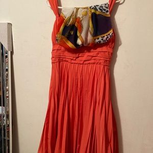 Anne Klein Orange Pleated Retro 50's Summer Dress sz10