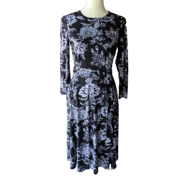 Anne Klein Midi Dress Women's Size 4 Black Paisley Floral 3/4 Sleeve Zipper Back