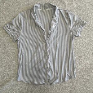 Anne Klein Pajamas. Capri pants, short sleeve button up top, medium , white/gray stripes, excellent condition