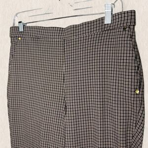 Anne Klein Pants Size L - Brown Houndstooth Check Slim Trousers Fall Workwear