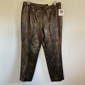Anne Klein Pants Womens 12 Gold Black Metallic Snake Print Embossed Straight Leg