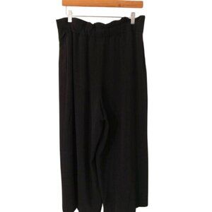 Anne Klein Paper Bag Waist Tie Front Super Wide Leg Pants Black Size M