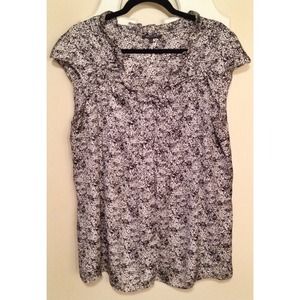 Beautiful black and white patterned top by Anne Klein. Features cap sleeves and a ruffled collar. This is in wonderful condition and looks so pretty on! The material is somewhat shiny. Could fit a large or x-large. New without tags!