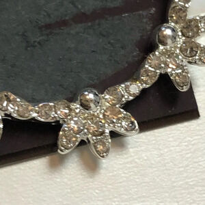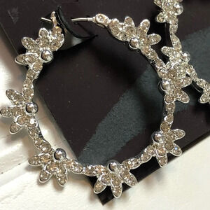 Anne Klein Pave Crystal Flower Silver Medium Hoop Earrings NWT