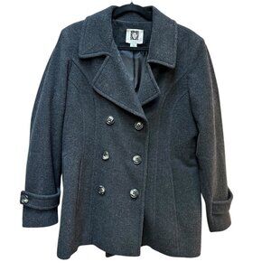 Anne Klein Pea Coat Charcoal Gray Wool Blend Double Breasted Pockets Size XL