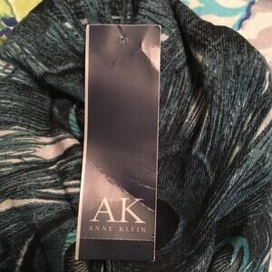 ANNE KLEIN PEACOCK PRINT SILK-COTTON-NYLON RUFFLE NECK CARDIGAN SWEATER 0X NWT