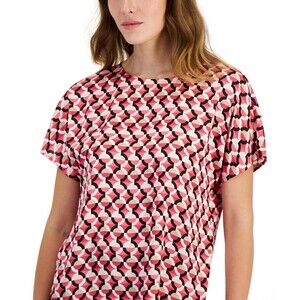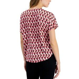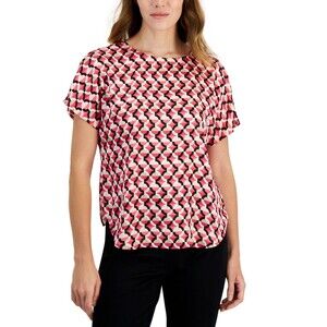 Anne Klein Petite Geo-Print Boat-Neck Dolman-Sleeve Top, Rich Camellia, P/XXS