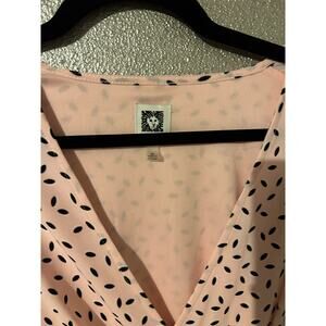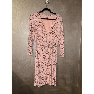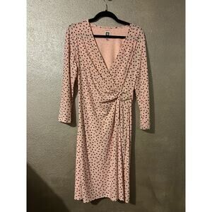 Anne Klein Pink Black Wrap Dress M Faux Wrap Bamboo Ring Preppy Vintage Chic