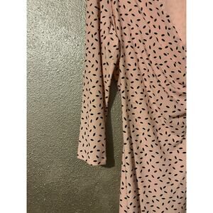 Featuring a surplice neckline, metal bamboo ring accent, and 3/4 sleeves, this dress gives effortless style and confidence. It’s in excellent condition and a size medium.