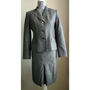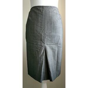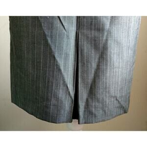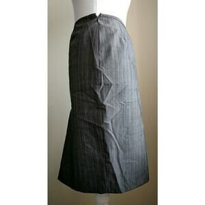 Grey pinstriped skirt has side zipper. Lined. Wear to work / career / suiting.