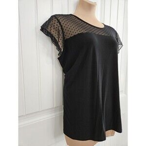 Anne Klein Plus Black Polka Dot Mesh Shoulder Flutter Sleeve Blouse Sz 1X