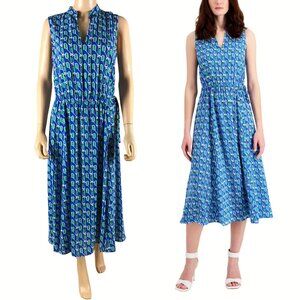 Anne Klein Plus Size 0X Blue Printed Drawstring Midi Dress NEW