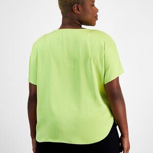 Anne Klein Plus Size Boat-Neck Short-Sleeve Blouse - Lime Green, 1X, NWT