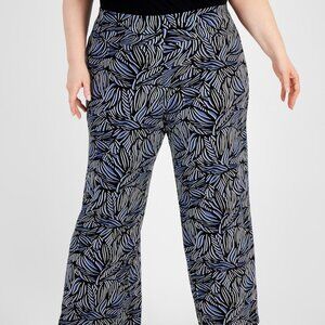 Keywords: Anne Klein, plus size pants, high‑rise pull‑on, wide‑leg trousers, printed pants, NWT, side‑pocket pants.