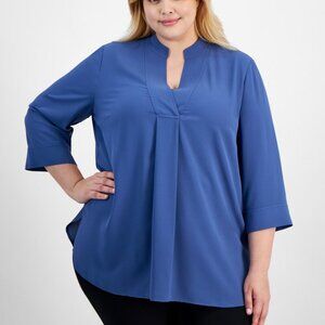 Anne Klein Plus Size Split-Neck 3/4-Sleeve Tunic Top – Blue Jay 2X NWT
