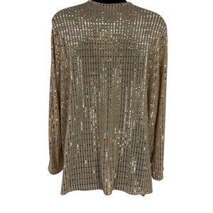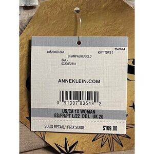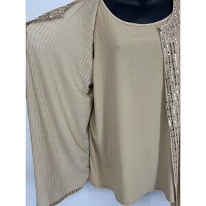 Anne Klein Plus Size Womens 2-fer Top Blouse Gold Sequin Scoop Long Sleeve New