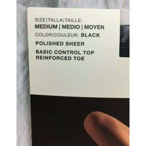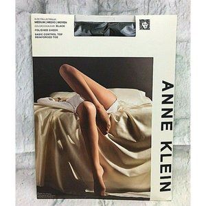 Anne Klein Polished Sheer Black M Basic Control Top Pantyhose Reinforced Toe