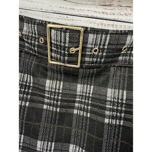 Anne Klein Ponte Knit Pencil Skirt Size XL Black Plaid Gold Buckle Mock Belt NEW